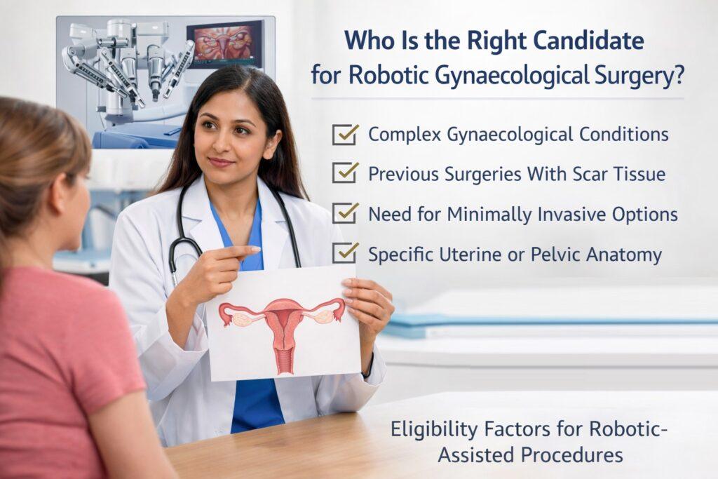 Robotic Gynaecological surgery may be considered for women who meet specific clinical criteria. Suitability depends on multiple factors rather than a single diagnosis.